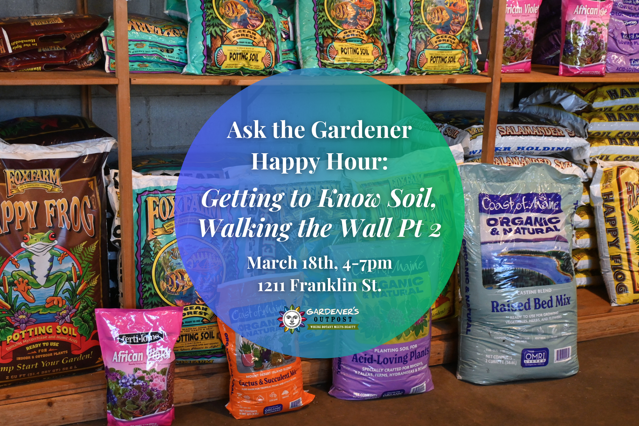 Join us on March 18th, 4-7pm at our Franklin St store to enjoy a discount on our beer & wine as we stroll along our wall of organic and sustainable soils to learn what each one does, when to use it, & how to get the best results in your garden.