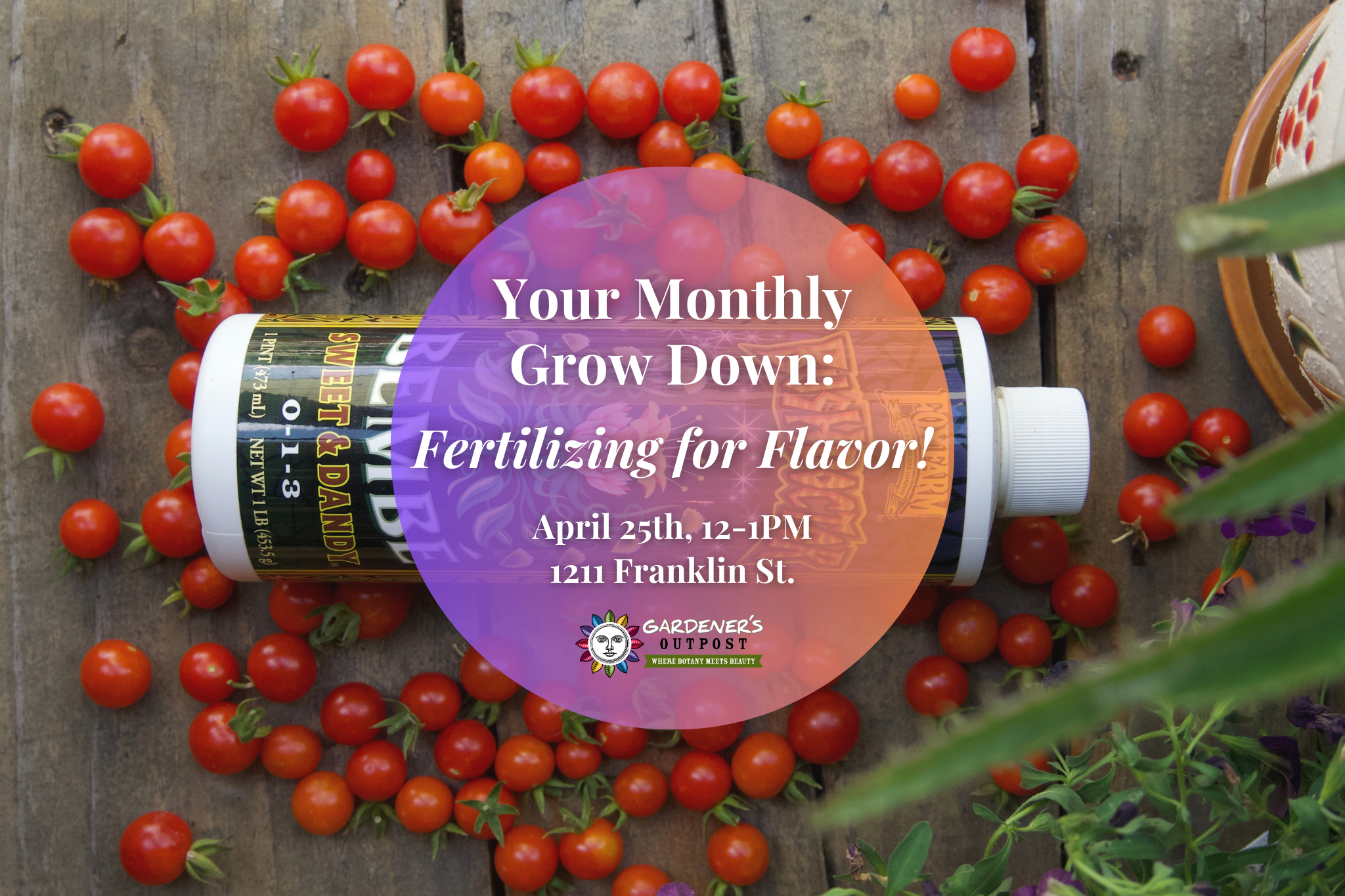 Join us for Your Monthly Grow Down! 🌱 From 12–1PM on Saturday April 25th at our Franklin Street store, Botanical Bill will lead a free gardening tutorial all about growing incredibly flavorful fruits and vegetables at home. He’ll share the products that make the biggest difference in taste, when and how to use them, and simple techniques that help your homegrown harvest reach peak flavor. Grab a seat, learn some pro tips, and enjoy a beer or glass of wine from our bar while you grow your gardening knowledge!